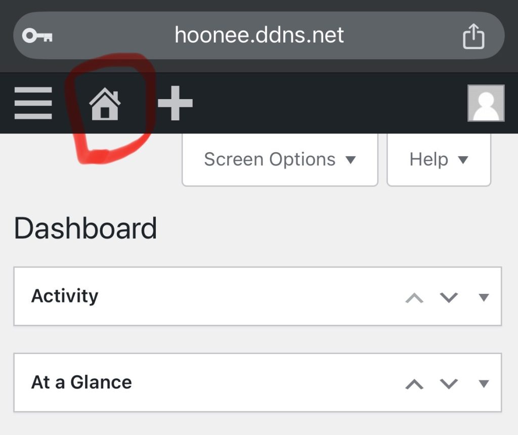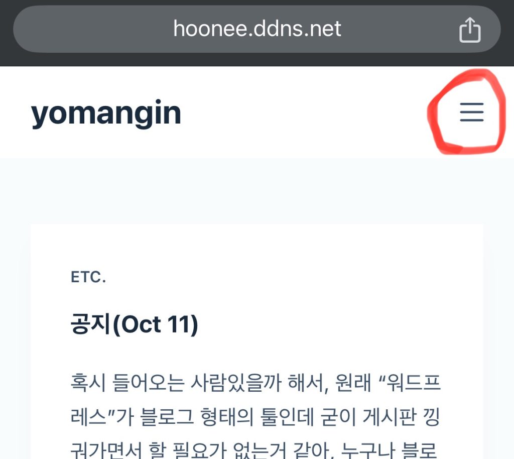hoonee.ddns.net 접속하고, 오른쪽 위 메뉴아이콘 클릭