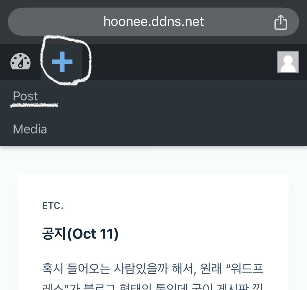 글을 쓰기위해 +를 눌러 Post와 Media 중에 Post를 선택한다고 했는데