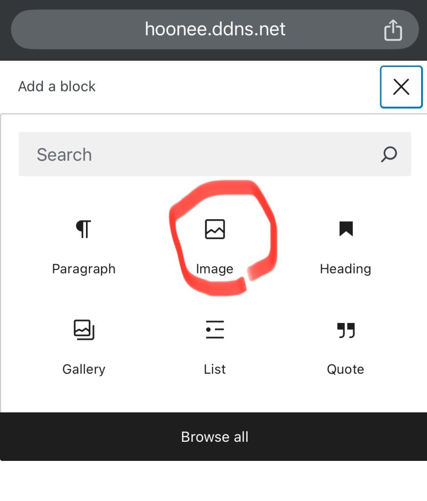 위에서, 사진을 선택할떄 “image” 아이콘을 선택하는 대신 “gellery” 아이콘을 선택하고