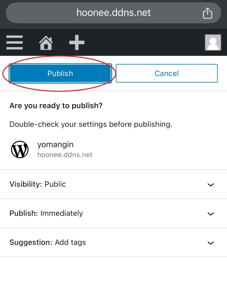 등록하기위해 publish를 누르면,