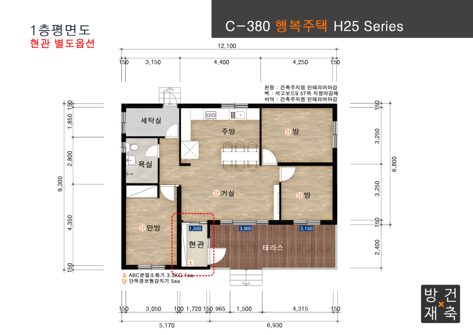 ->25평모델은 데크기본모델이며 처마 700만원 옵션입니다. 보일러실은 현장에서 기본제작해드립니다