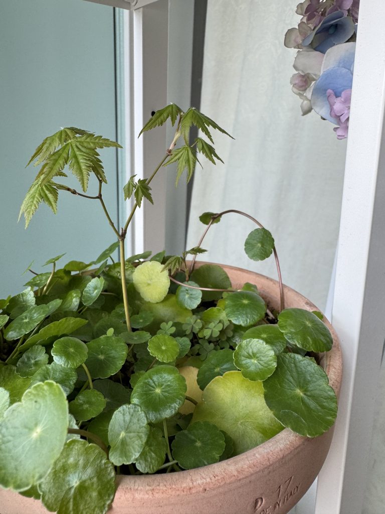 으초랑 산택하다 공원에서 채집해온 단풍 3주 중에 2주가 겨울을 잘 견디고 새싹이 나왔어. 보들보들 윤기 반짝.